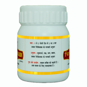 * Indication: Chitrakadi Vati (Gutika) increases digestive power and is beneficial for Ama पाचन (digestion of undigested toxic metabolites).