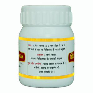 * Indication: An excellent carminative and digestive. Hingwashtak Churan is an excellent medicine for indigestion, flatulence, and abdominal pain.