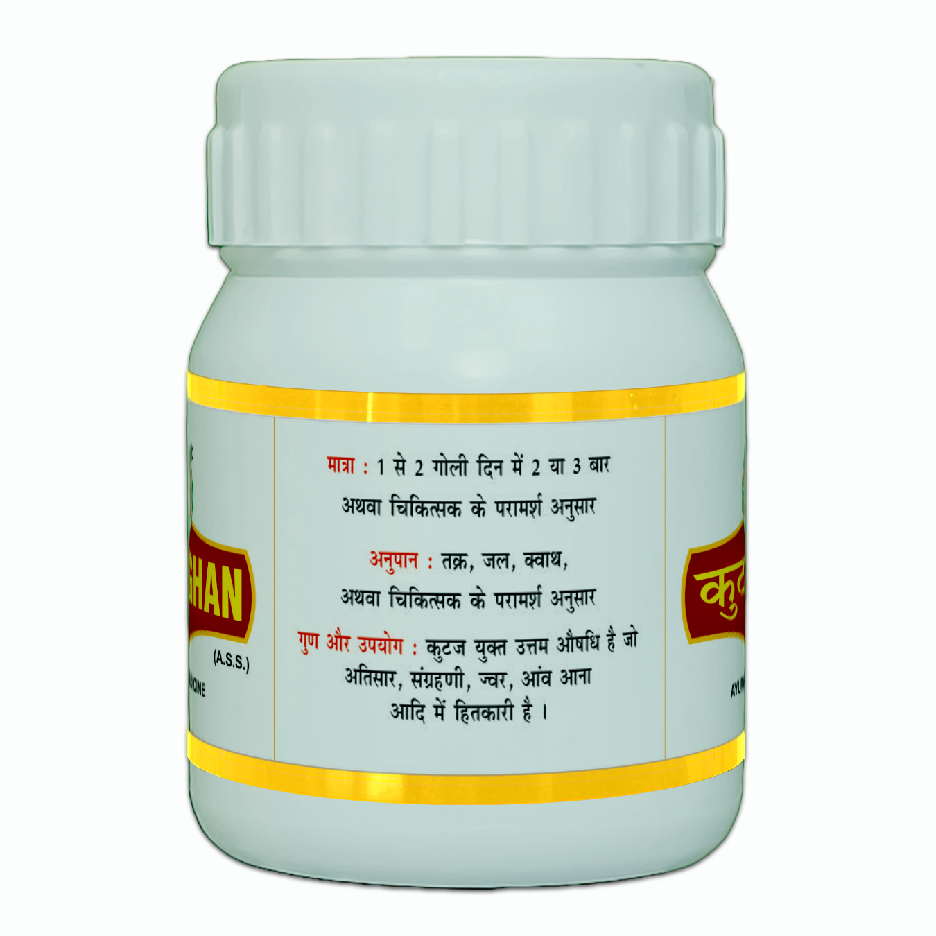 * Indication: Kutajghan Vati is an excellent medicine containing Kutaj, which is beneficial in diarrhea, dysentery, fever, amoebiasis, etc.