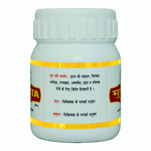 * Indication (गुण और उपयोग):Mukta Pishti is an excellent medicine for heart palpitations, restlessness, internal burning sensation, tuberculosis, hyperacidity, and heart and brain diseases. (हृदय की धड़कन, चित्तभ्रम, अन्तर्दाह, राजयक्ष्मा, अम्लपित्त, हृदय व मस्तिष्क रोगों के लिए विशेष हितकारी है।)