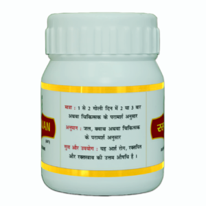 * Indication: Rasaanjan Vati is an excellent medicine for “”Arsha Roga”” (Piles/Hemorrhoids), “”Raktapitta”” (bleeding disorders like epistaxis, etc.), and “”Raktasrava”” (bleeding).