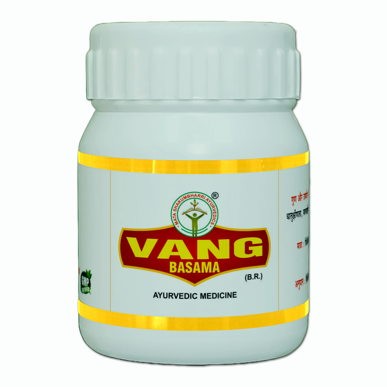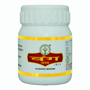 * Indication (गुण और उपयोग):Vang Bhasma is beneficial in diabetes, somarog (excessive urination in women), debility, nocturnal emissions, and premature ejaculation. (यह भस्म प्रमेह, सोम रोग, धातुक्षीणता, स्वप्नदोष, वीर्य स्तम्भन में हितकारी है।)